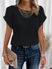 2024 Hollow Lace Splicing Plus Size Short Sleeve T-shirt for Women