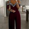 Women's Off-Shoulder Jumpsuit with Polka Dot and Rhinestone Detail In Black, Wine Red, Navy Blue