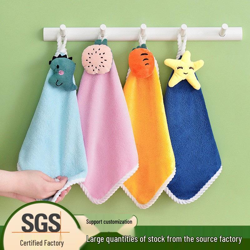 Coral Fleece Absorbent Cartoon Hand Towel - Cute, Hangable, Lint-Free