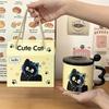 Ceramic cup: Personalized cat mug with lid souvenir cup cute ceramic cup cartoon water cup gift high-value internet celebrity