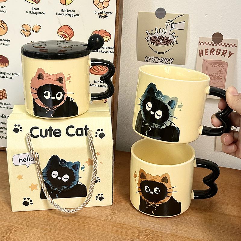 Opening gift cup: Cat mug retro design ceramic water cup with lid gift box souvenir high-end cup cartoon girl