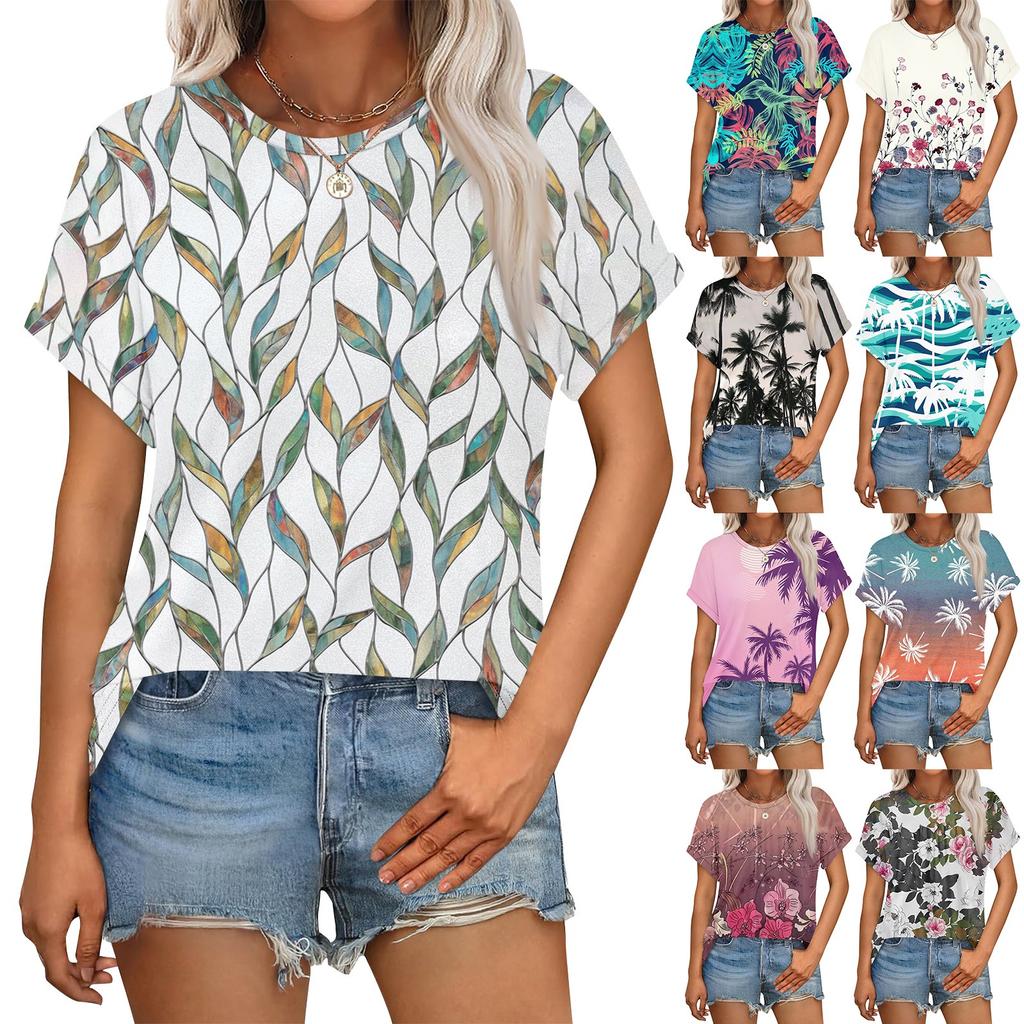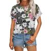 Women's Casual Fashion Round Neck Rolled Hem Short Sleeve Floral Top