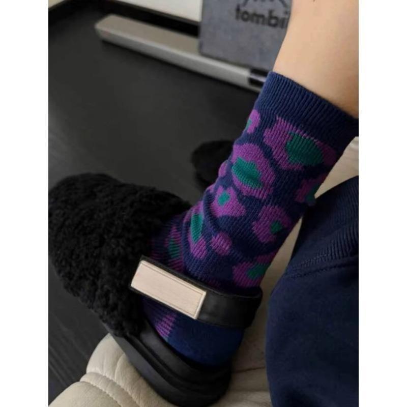 Retro Artistic Style Women's Mid-calf Socks, Double-needle Double-lane Mid-calf Socks