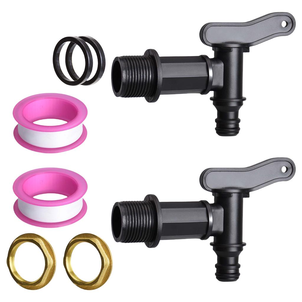 2Pcs Tank Tap Adapter Replacement Water Tap with Brass Nut 3/4in Water Butt Tap Coarse Thread Garden Water Tanks Faucet