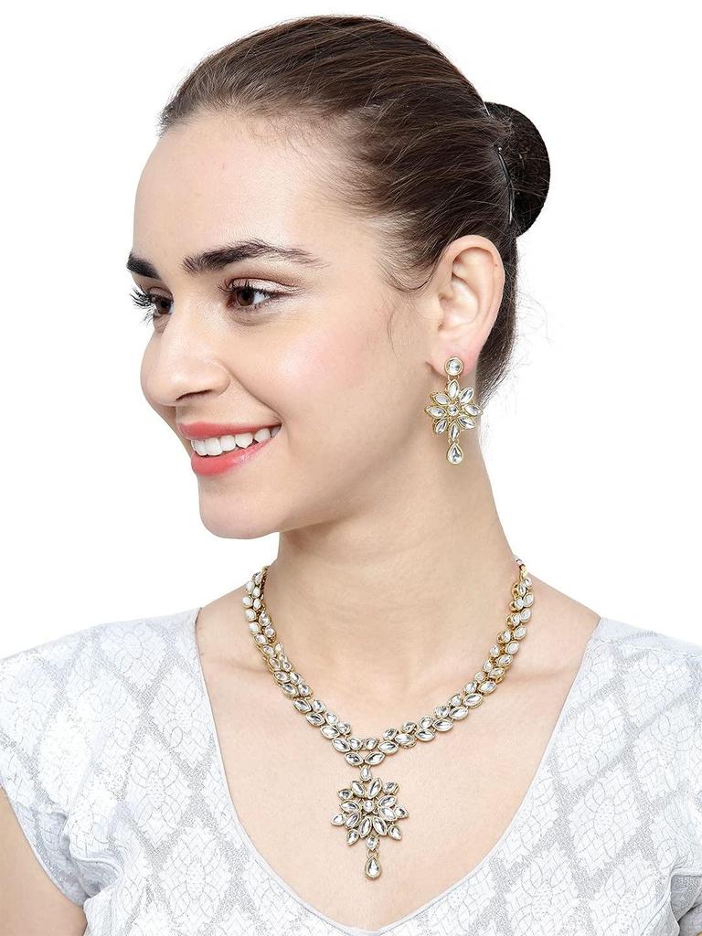 Fashion Jewellery Gold Plated Kundan Fancy Party Wear Necklace Traditional Jewellery Set with Earring for Women and Girls