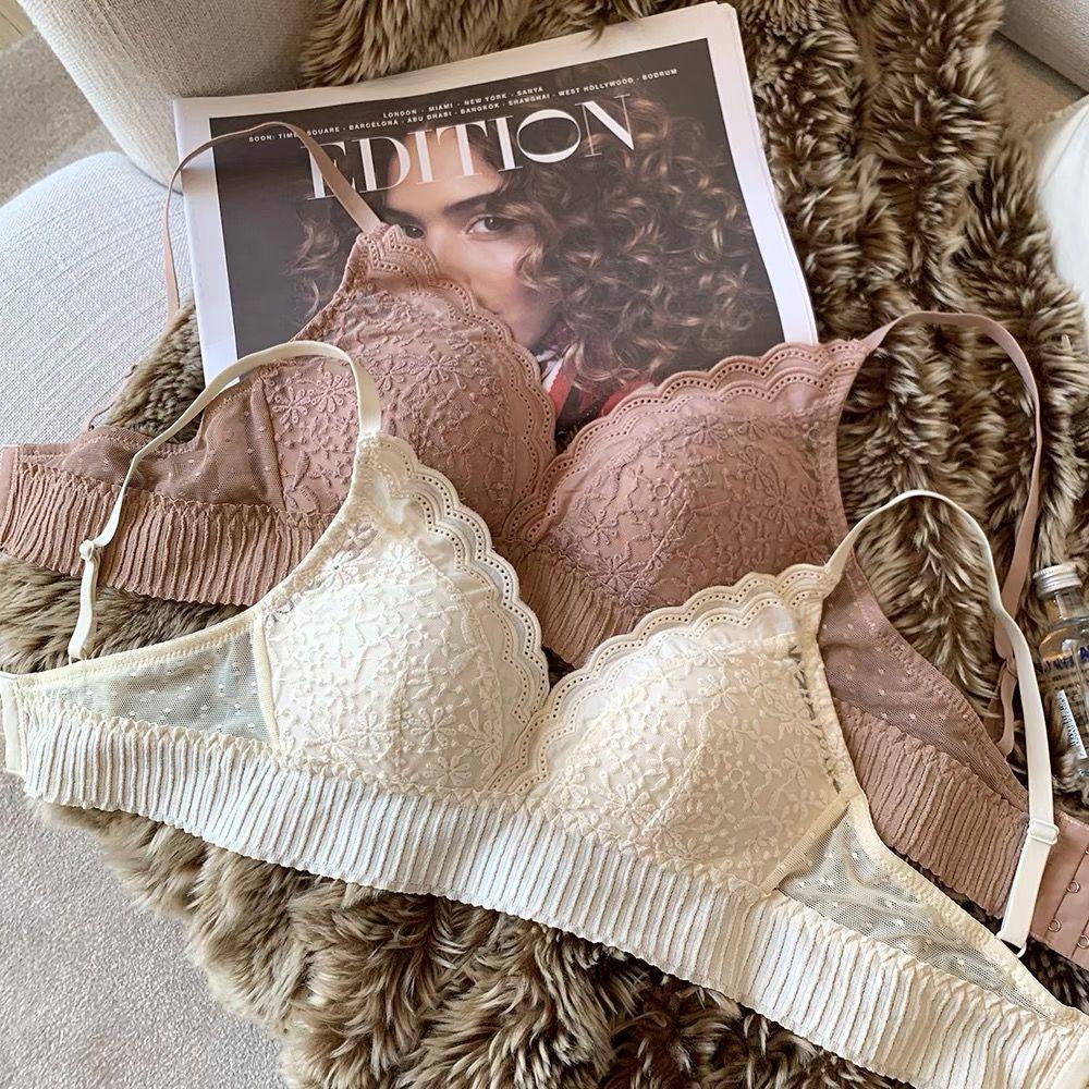 French Wire-free Women's Thin Triangle Cup Bra Large Chest Minimizing Lace Side Breast Gathering Back Beauty Underwear