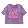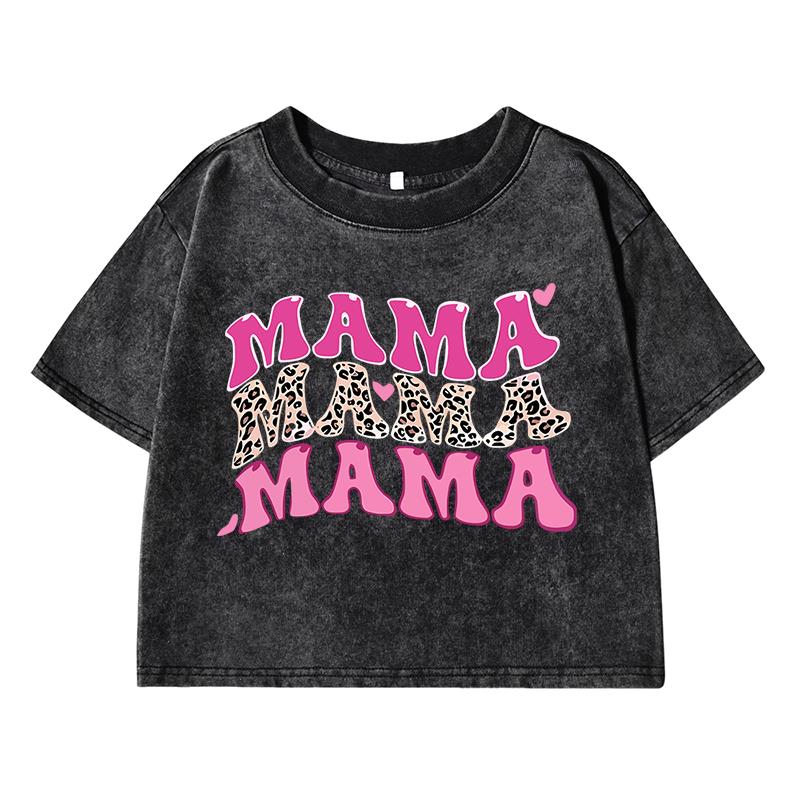 Mama Funny Letter Printing Female Washed Short T Shirts Breathable Midriff-Baring T-Shirt Street Distress Tops