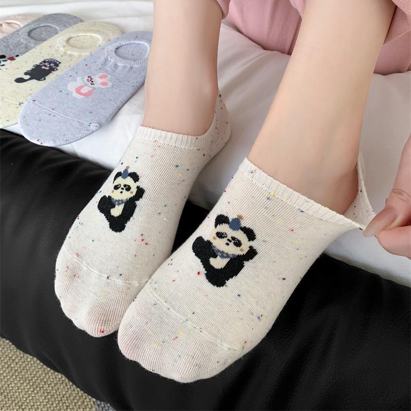 Women's Summer Thin Cotton Cartoon Animal Yarn Low Top Shallow Mouth Invisible Non Slip Heel Socks