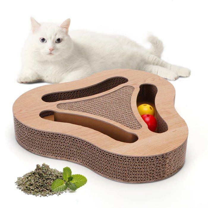 Grattoir chat 3 en 1 - nobleza - tapis à gratter - carton durable - jouets inclus - herbe à chat