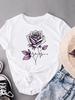 (Asian Size) Clothing Lovely Flower Style Trend Print Female Casual Short Sleeve Fashion T Women's Top Graphic Tee T-shirts
