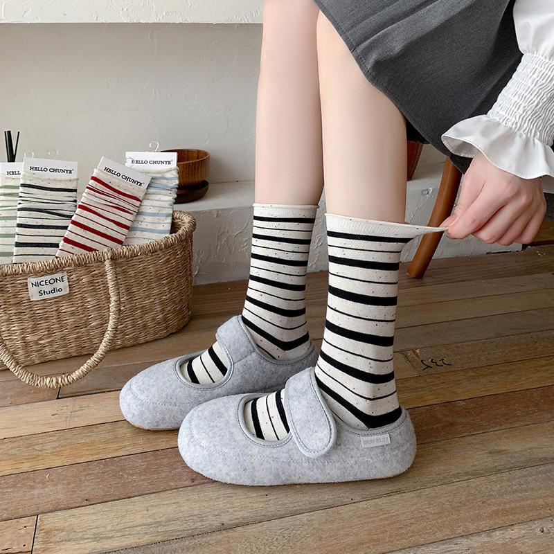 Women's Spring and Summer Thin Polka Dot Chiffon Fringed Striped School Tufted Cotton Socks