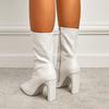 Leather Boots Short Boots Women's Medium Tube Square Head Long Side Zipper Large Size Short Tube High Heel Boots