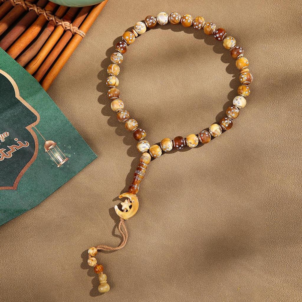 Hui Muslim Prayer Tasbih: 33 Handmade Imitation Amber Beads for Zikr and Jewelry.