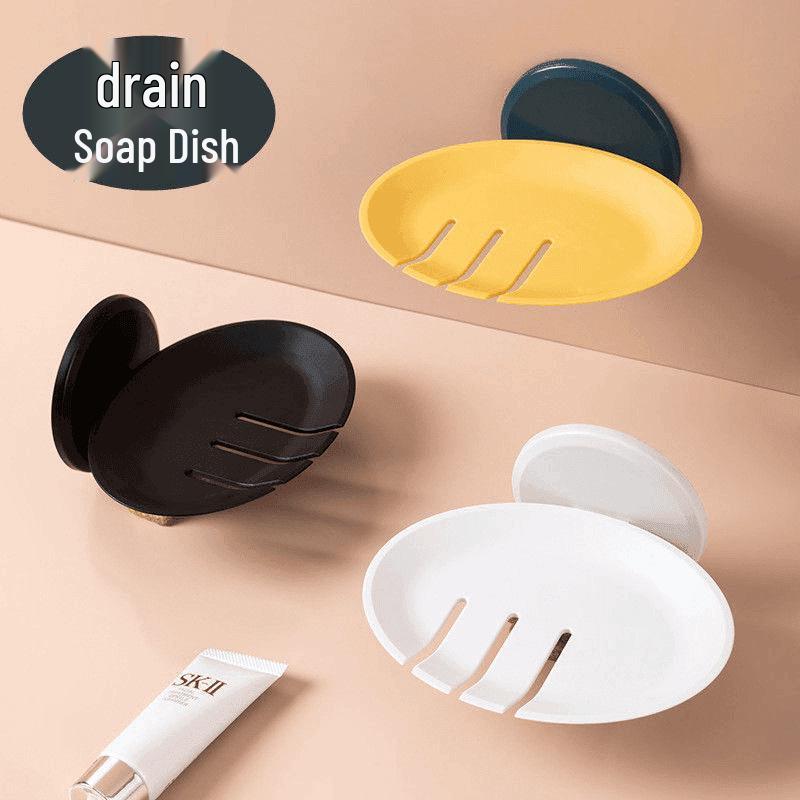 Punch-Free Wall-Mounted Soap Dish with Drainage and Suction Cup
