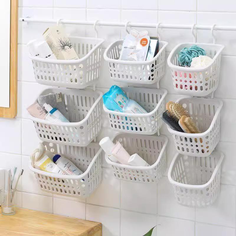 Wall-Mounted Plastic Storage Basket for Kitchen and Bathroom