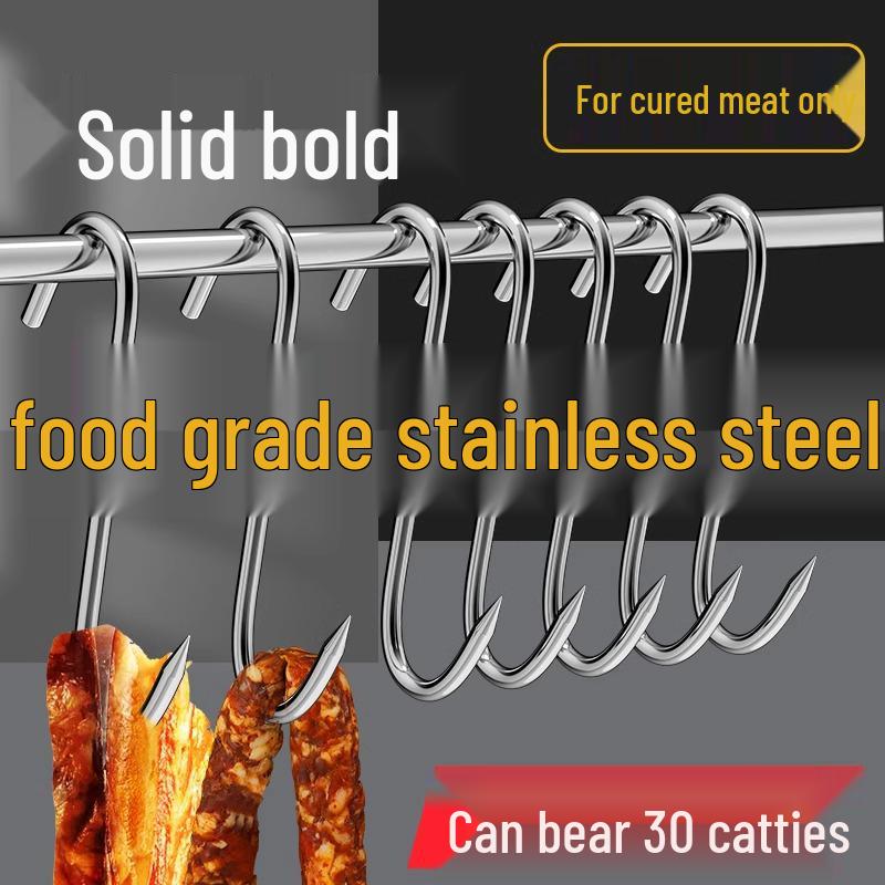 Stainless Steel S-Shaped Hook for Hanging and Drying Meat: Bacon, Duck, Sausage, Pork, Fish - Thickened and Pointed.
