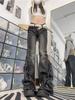 ZYLLO High Quality American Vintage Clothes Raw Edge Design Flared Jeans for Women Patchwork Low-rise Washed Denim Y2k Pants