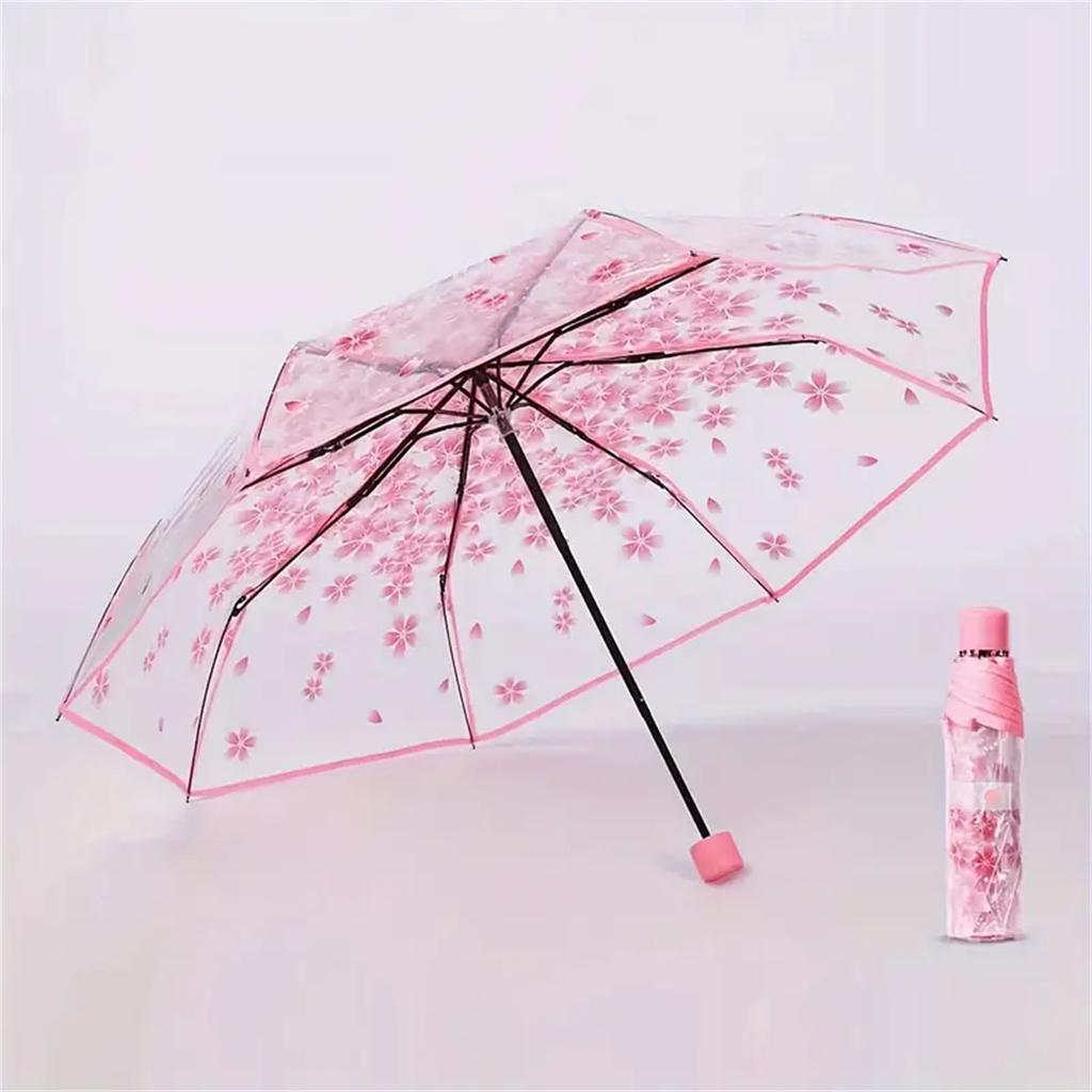 Korean Umbrella Folding Cute Korean Mini Fresh Simple Sen Series Trifold Cherry Blossom Transparent Japanese Umbrella