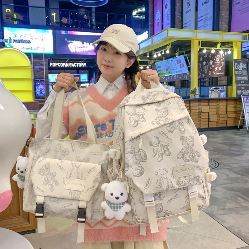 Casual Backpack Girl Cute Bear Lightweight Weight Backpack Junior High School College Student Schoolbag Fashion