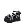 Japanese Kawaii Punk Goth Chunky Platform Pumps Women Bowtie Wedges Mary Jane Lolita Shoes Woman Heart Ankle Buckle Black Shoes