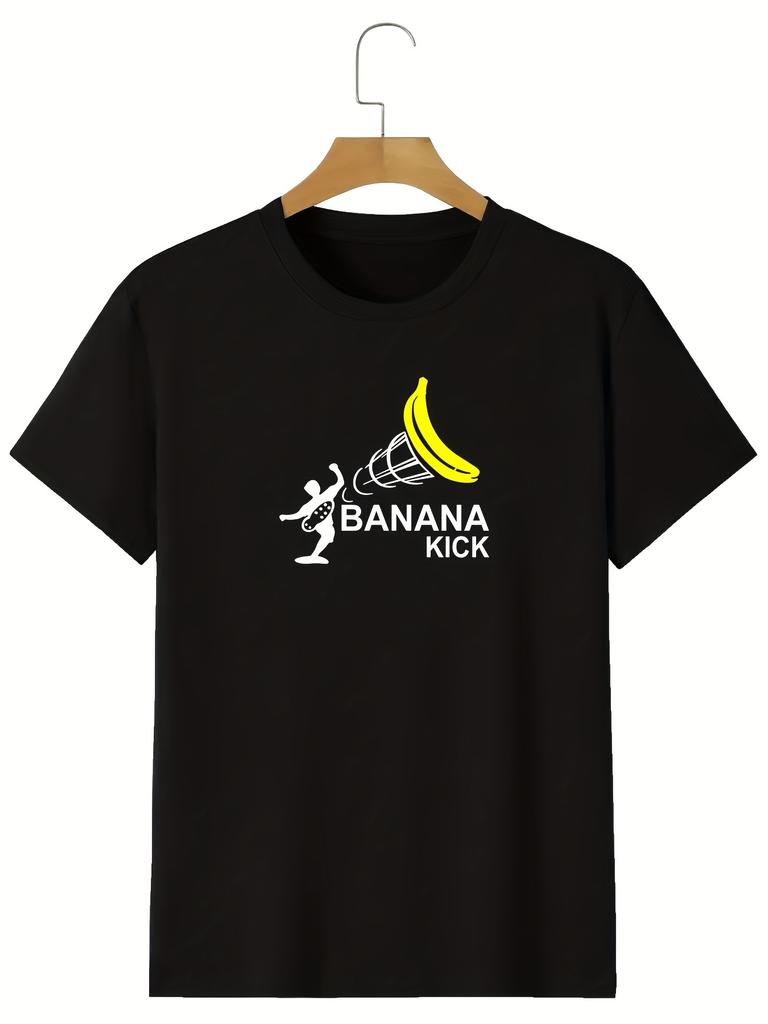 "Banana Kick" Graphic T-shirt, Men's Casual Solid Color Slightly Stretch Round Neck Tee For Spring Summer