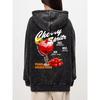 Fashion Womans Washed Hoodie The Cherry Sprits Printed Streetwears Warm Cotton Oversize Pullovers Autumn Winter Clothes