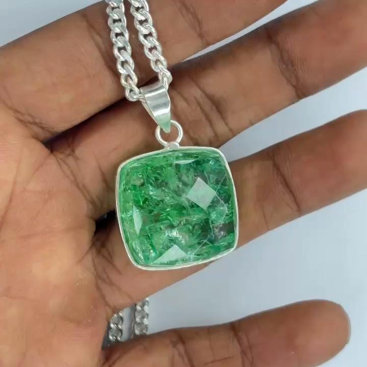 Natural Emerald 133 Ct CERTIFIED Square Cushion Cut Pendant 925 Starling Silver MY.PD-157-NS