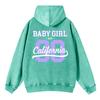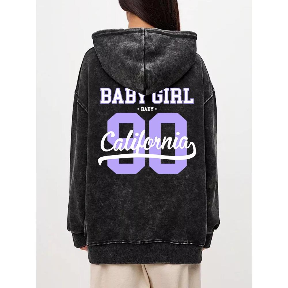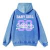 Autumn Winter Woman Washed Hoodies 90 California Letter Prints Sweatshirts Oversize Pocket Cotton Hooded Clothes