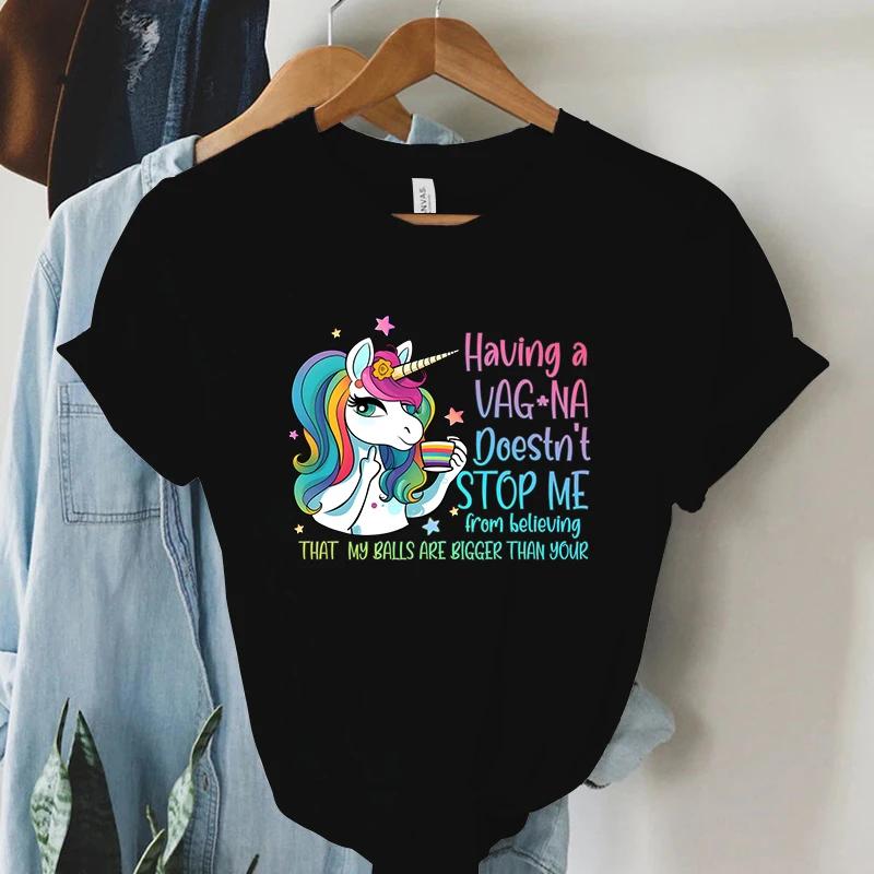 Rainbow Unicorn T Shirt Funny Cartoon Tops Summer Women Streetwear Y2K Aesthetic T Shirts Grunge Harajuku Tee Shirt Female