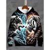 Vintage Men's Hooded Hoodies 3D Printed Battle Animal Pattern Sweatshirt Drawstring Sport Long Sleeve Tops Casual Men's Clothing