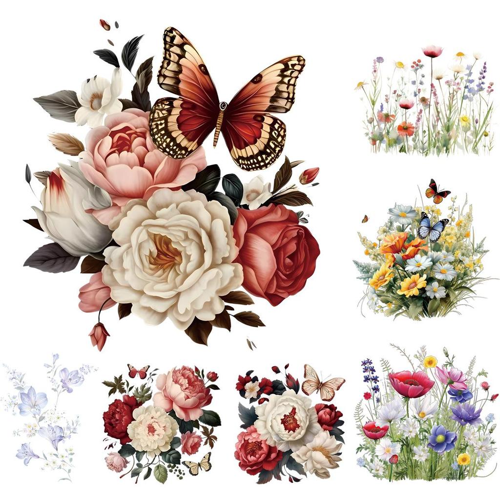 Vivid Flowers Iron On Transfer Stickers Print On T-Shirt Dresses Heat Press Appliqued Diy Cartoon Flowers Patches Beautiful