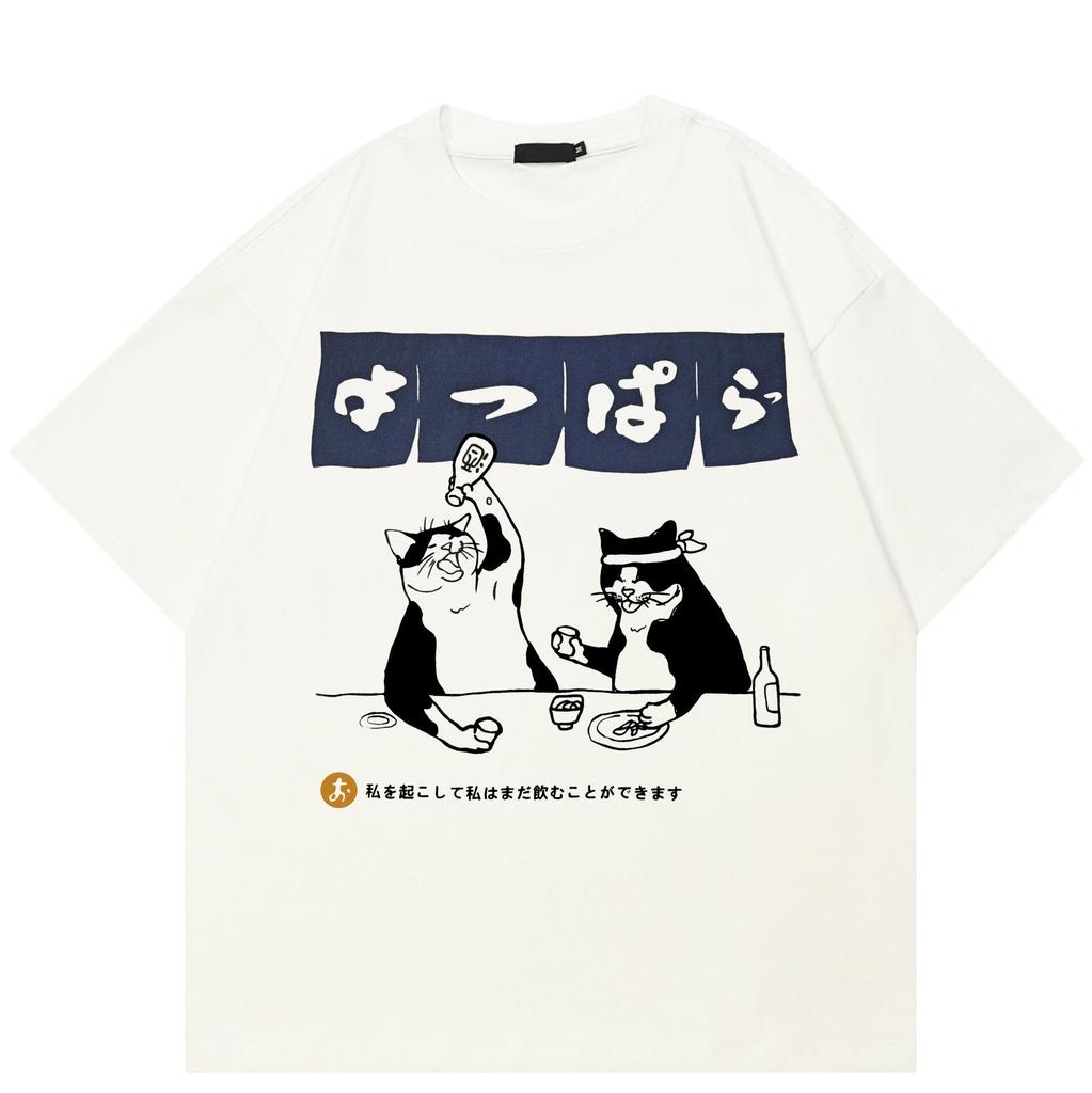 Streetwear Cats Graphic T-Shirt Cotton Tshirt Unisex Tops Tees Summer Short Sleeves T Shirt