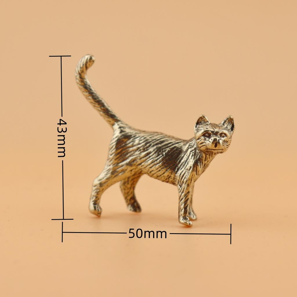 Retro Cat Brass Ornament Creative Long Tailed Cat Desktop Tea Pet Micro Carved Crafts Home Decoration Countryside Cat Ornament