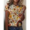 Plus Size Women's 3D Printed Sunflower Pattern T-shirt An Elegant Casual Crew Neck Short Sleeved Top