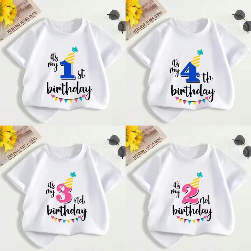 Summer Children's First Birthday Number T-shirt, Fashionable Short-sleeved Top for Boys and Girls