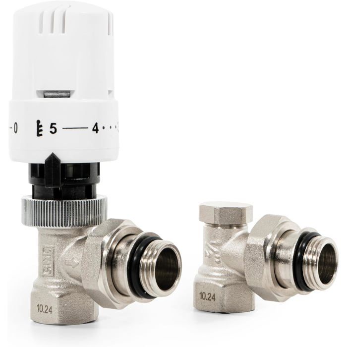 Vancoco robinet thermostatique radiateur et coude de reglage en equerre g12 (1521) - raccord etanche avec joint 1521 - kit thermo