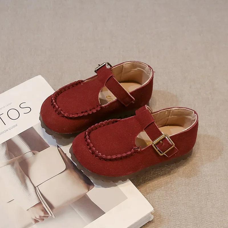 Girls Moccasins British Style Retro Kids Princess Shoes T-strap Round Toes 2025 New Fashion Children Flat Shoes Non-slip Soft