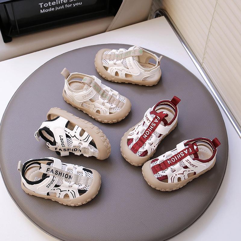 Kids Sandals Hollowed-out Mesh Breathable Boys Girls Casual Shoes Toes Capped 2025 Summer New Children Sports Sandals Hook&loop