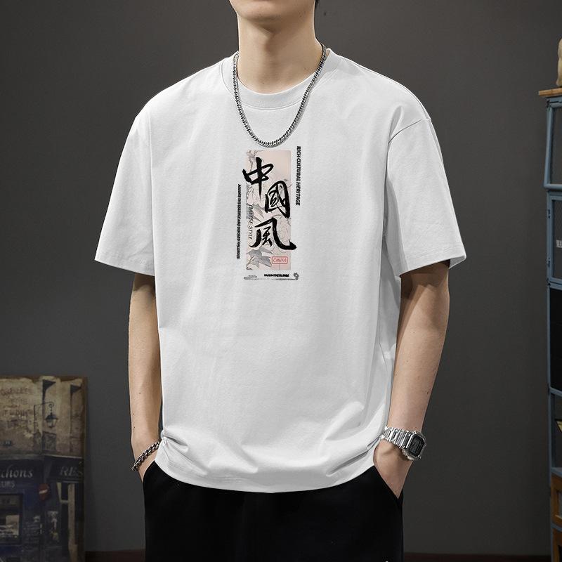Short Sleeved T-shirt Men's Weighty Summer China-Chic 2025 New Trend Cotton Bottoming Shirt Loose High Street