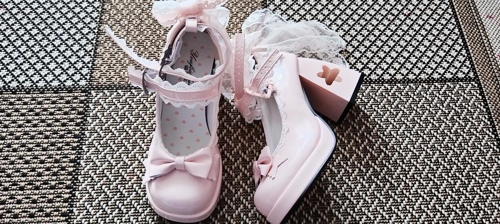 Lovely Girls Lolita Butterfly Knot High Heels Platform Shoes ,Young Women Students Cute Sakura Wedding Dress Mary Janes