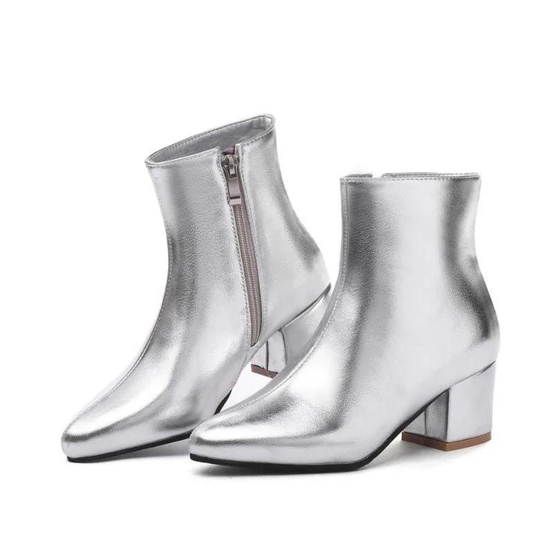 Women's Boots Ankle Korean Style Autumn and Winter New Pointed Short Boots Square Heel Side Zipper Warm Outdoor Women Shoes