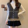 Women's Knitted Vest Gilet Korean Style Loose V Neck Outerwear Sweater Waistcoat for Spring Autumn Winter