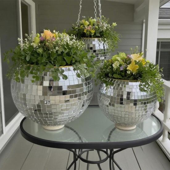 Strong Weather Resistance: Crafted from plastic and mirror patches, our flower pot boasts exceptional durability and weather resistance, enduring sun, rain, and wind to maintain its beauty and functionality over time.