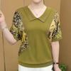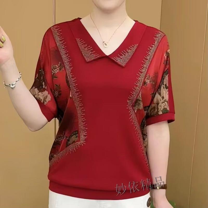 Vintage Women Clothing Floral Print T-shirt Summer New Fashion Short Sleeve Diamond Big Size Loose Red Elegant Casual Tees Tops