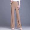 Simplicity Office Lady Summer Pants Women Solid Color Elastic Waist Pockets High Waist Fashion Slim Straight Casual Flare Pants