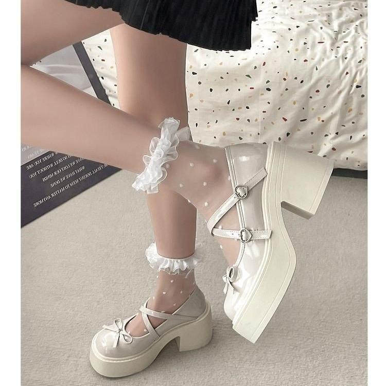 Butterfly Knot Thick High-heeled Small Leather Shoes for Women 2024 New Japanese JK Versatile Mary Jane Single Shoes