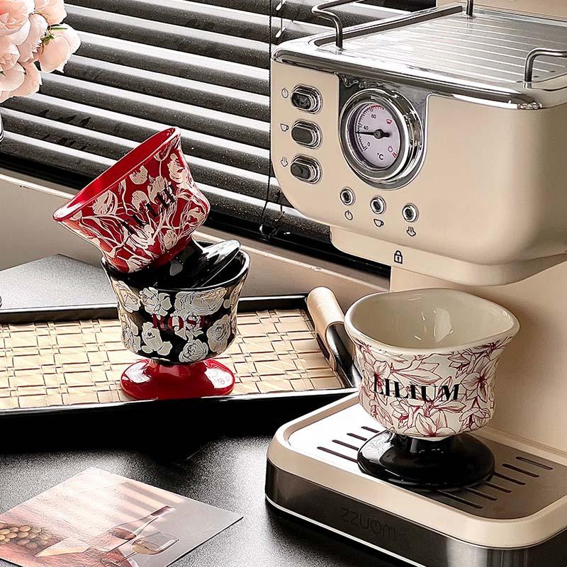 Creative Flower Shape American High Foot Coffee Cup Commercial Household Italian Coffee Pull Up Cup Ceramic Cup