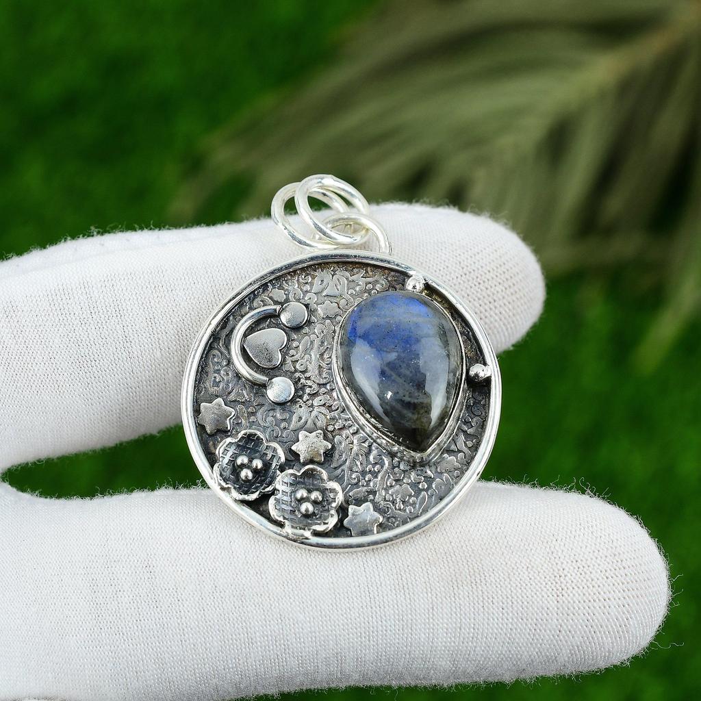 Gift For Women Jewelry Pendant 925 Sterling Silver Natural Labradorite Gemstone
