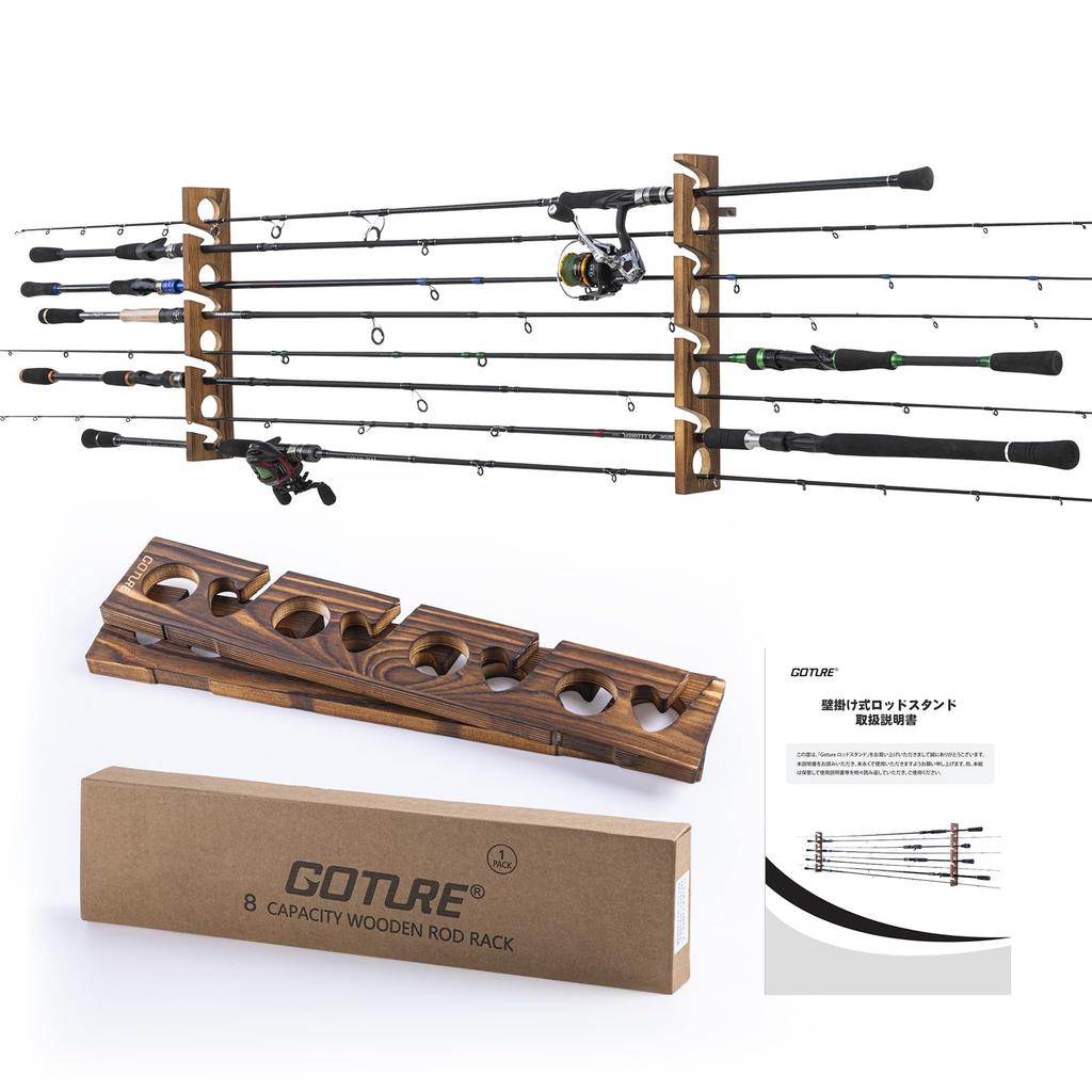 Goture Rod Stand Solid Japanese Instruction Manual 8 Set of 1 Fishing Tackle Easy To Removable Wooden Ceiling or Wall Mountable Wall-Mounted (Natural