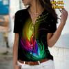 2025 Summer New Fashion Women's Feather Printed Short Sleeve V-neck Casual Button-down Shirt Top